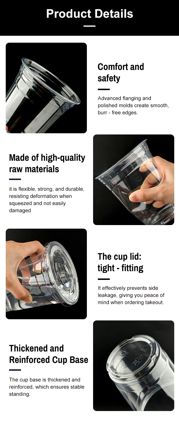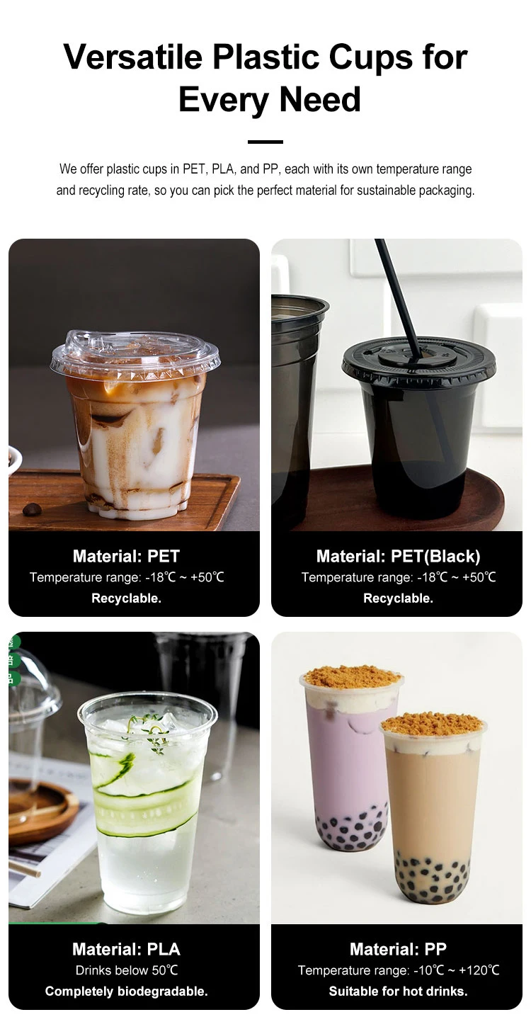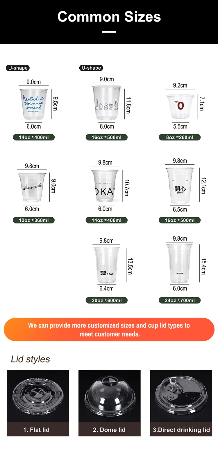 لیوان پلاستیکی یکبارمصرف سفارشی با کالیبر 90، 92، 98 میلیمتر، لیوان شفاف U شکل از جنس PP، PET، PLA، لیوان چای حبابی بابا با درب