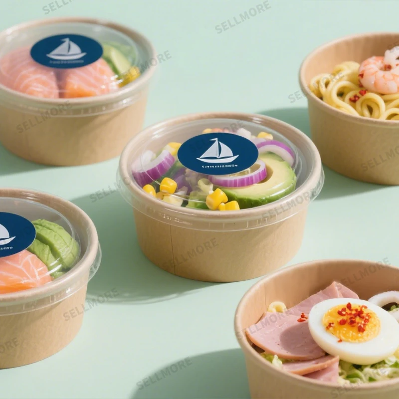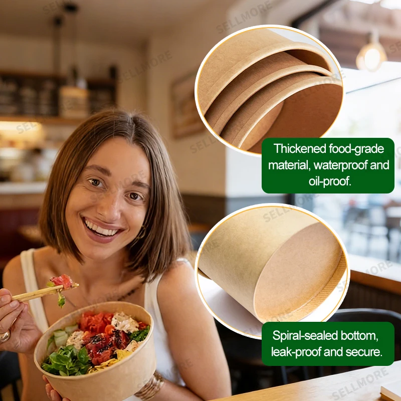 750 ml és 1300 ml-es salátás kraftpapír tál, egyedi, mikrohullámú sütőben használható papírtál fedéllel