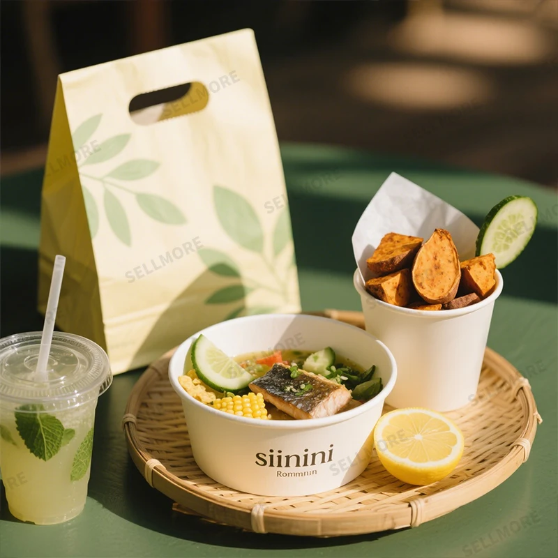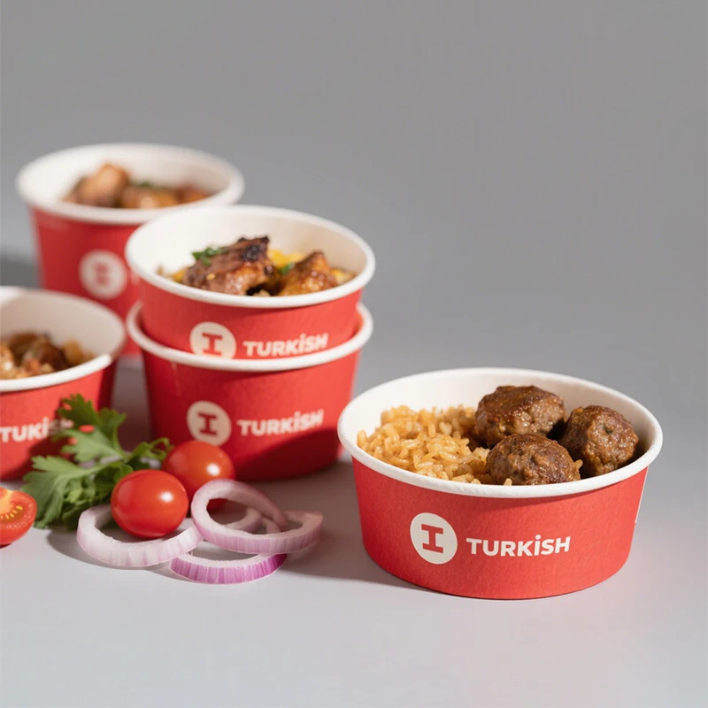 Élvezze a legnagyobb kényelmet termékeinkkel: mikrohullámú sütőben használható kraftpapír tálak , amelyek 750 ml és 1300 ml űrtartalommal érhetők el. Ezek egyháruló élelmiszer-tartályok kiválóan alkalmasak gazdag levesek, friss saláták és tésztaétel-forgalmazásra, így sokoldalú megoldást nyújtanak étel-előkészítéshez és kiszállítási csomagoláshoz . A merev szerkezet biztosítja, hogy meleg és hideg ételek tárolására is alkalmasak legyenek, anélkül, hogy kifolynának, miközben a mellékelt fedél biztonságos zárásra szolgál a szállítás során. Környezetbarát anyagokból készültek, így összhangban állnak a komposztálható ételkészítő edények és fenntartható élelmiszer-szolgáltatási megoldások irányába történő átállással. Személyre szabhatók saját logójával, hogy erősítsék márkáját, és kielégítsék a növekvő öko-tudatos Fogyasztók . Ideal a kiszállítási és vendéglátási , tányérunk megbízható, vonzó és környezetbarát megoldást kínál vállalkozása számára.
