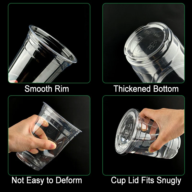 Ezeket a poharakat magas minőségű PET anyagból készítettük, ezért teljesen újrahasznosíthatók és komposztálhatók , összhangban a növekvő igényekkel a fenntartható élelmiszer-csomagolás . Akár jeges kávét, friss gyümölcslevet, smoothie-t vagy más hideg italokat szolgál fel, a kristálytiszta dizájn gyönyörűen mutatja be italait, miközben megtartja szerkezeti integritásukat.