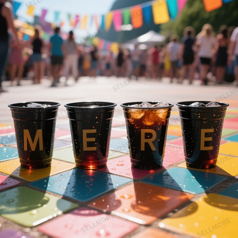 Alakítsa poharait erős márkaképviseleti eszközökké! Fekete PET műanyag poharaink sima felülete kiválóan alkalmas a logók és dizájnok nagy minőségű, foltmentes egyedi nyomtatására – márkája élesen kiemelkedik a klasszikus fekete háttér előtt. Egyedi nyomtatású műanyag poharak, logós műanyag poharak, márkás egyszer használatos poharak, egyedi nyomtatású fekete műanyag poharak