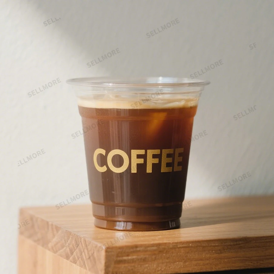Egyedi nyomtatású, egyszer használatos PET vagy PLA tiszta kávépohár, 12, 16, 20, 24 és 32 uncia méretű műanyag poharak fedéllel