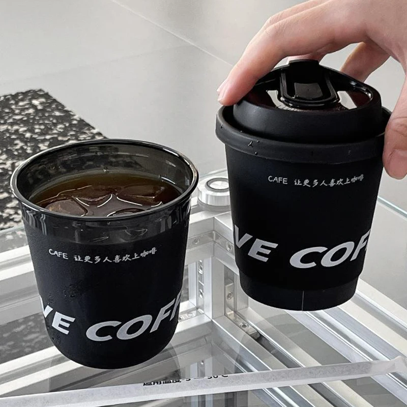 Copo de Papel Descartável Ecológico com Relevo, Parede Dupla, 12oz, para Café Quente, Chá Boba, Copos de Papel PE com Tampa para Bebidas Frias