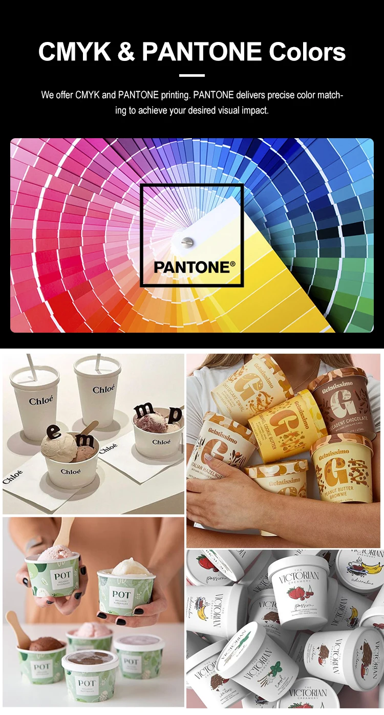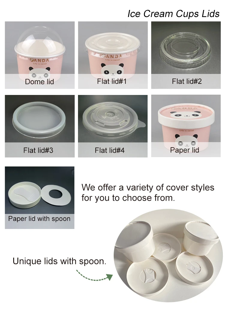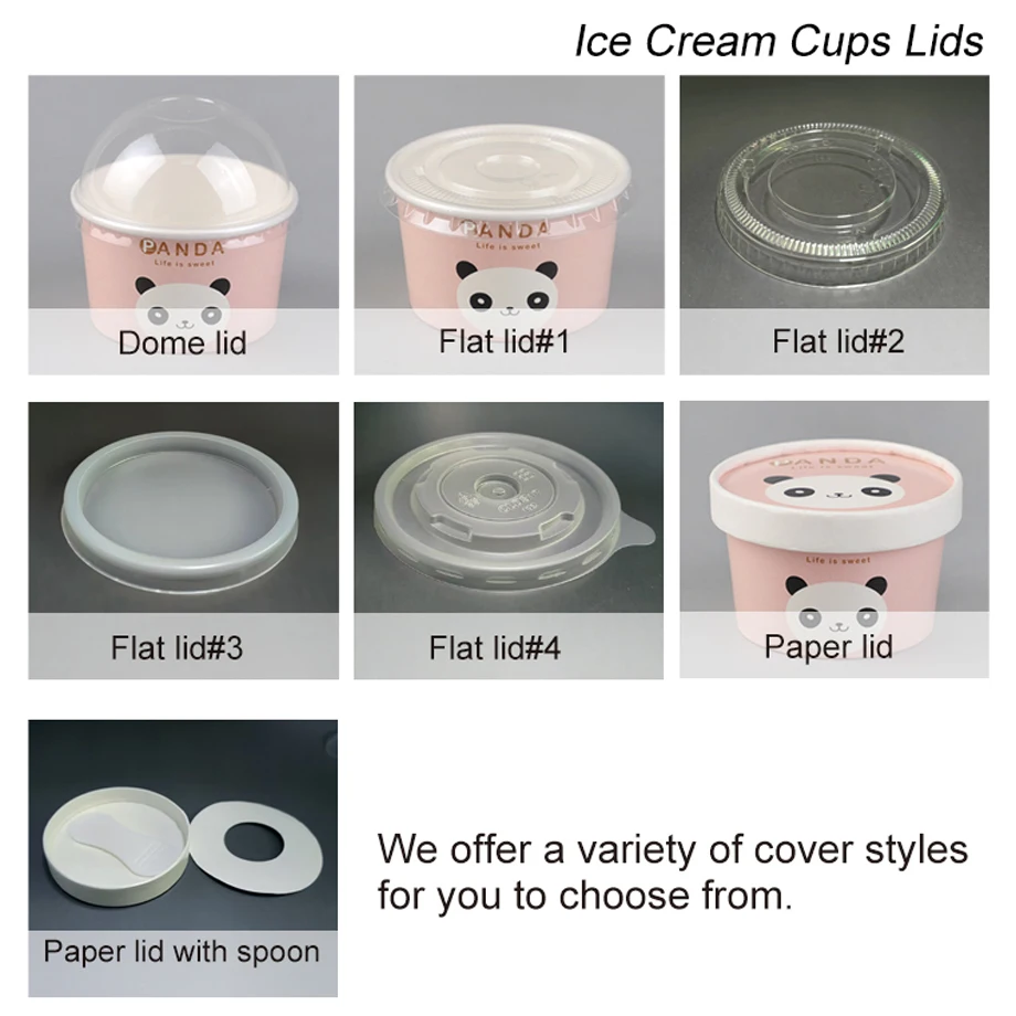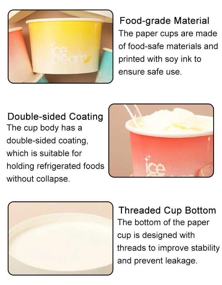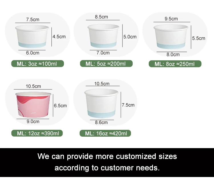 Papperskoppar för glass i storlekar från 1 oz till 38 oz. Anpassade storlekar finns också tillgängliga. |